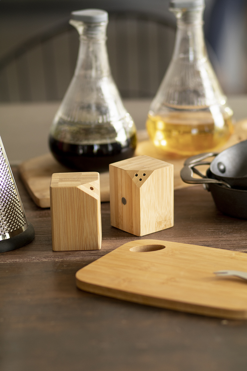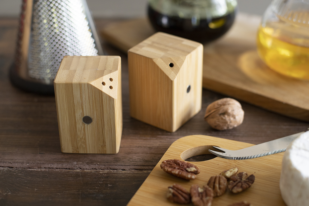 Set di 2pz composto da una saliera ed una pepiera in bambù. Il set si incastra facilmente al centro grazie ai magneti posizionati su di un lato.
