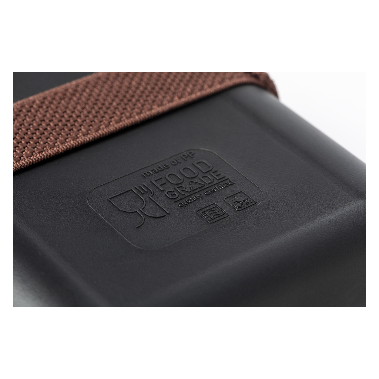 Contenitore per il pranzo in plastica PP con coperchio in bambù e cinturino elastico. 1000 ml.