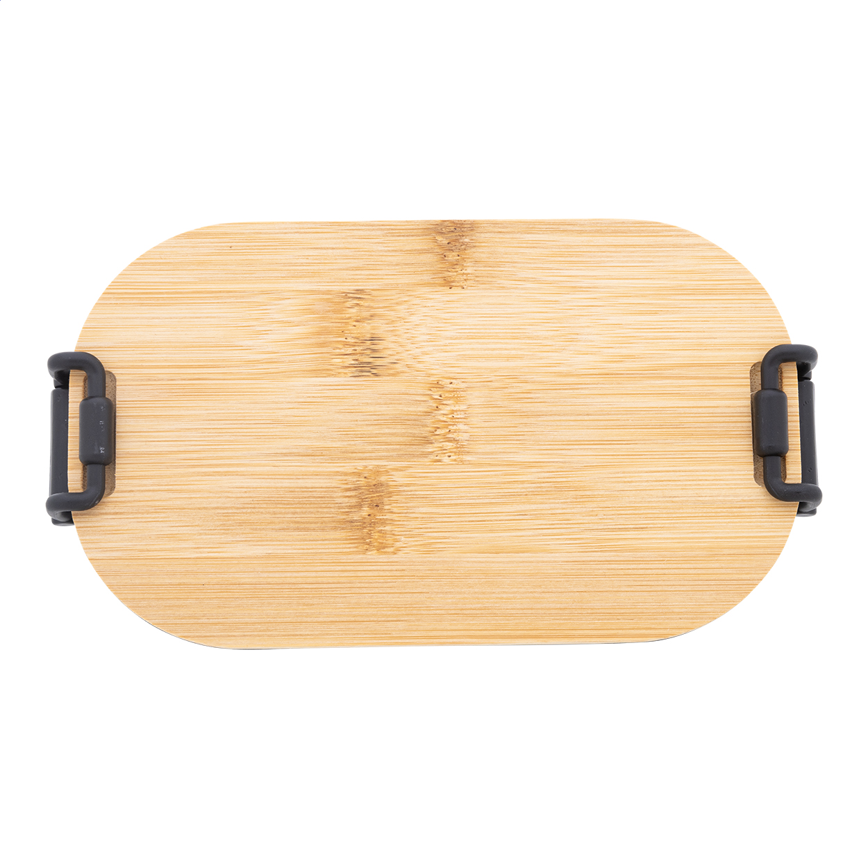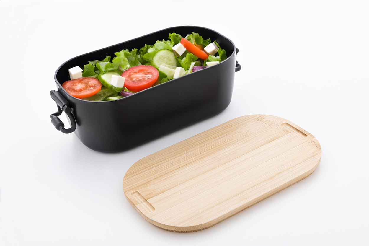 Contenitore per il pranzo in plastica PP con capacità di 1000ml., coperchio in bambù e chiusura a gancio.