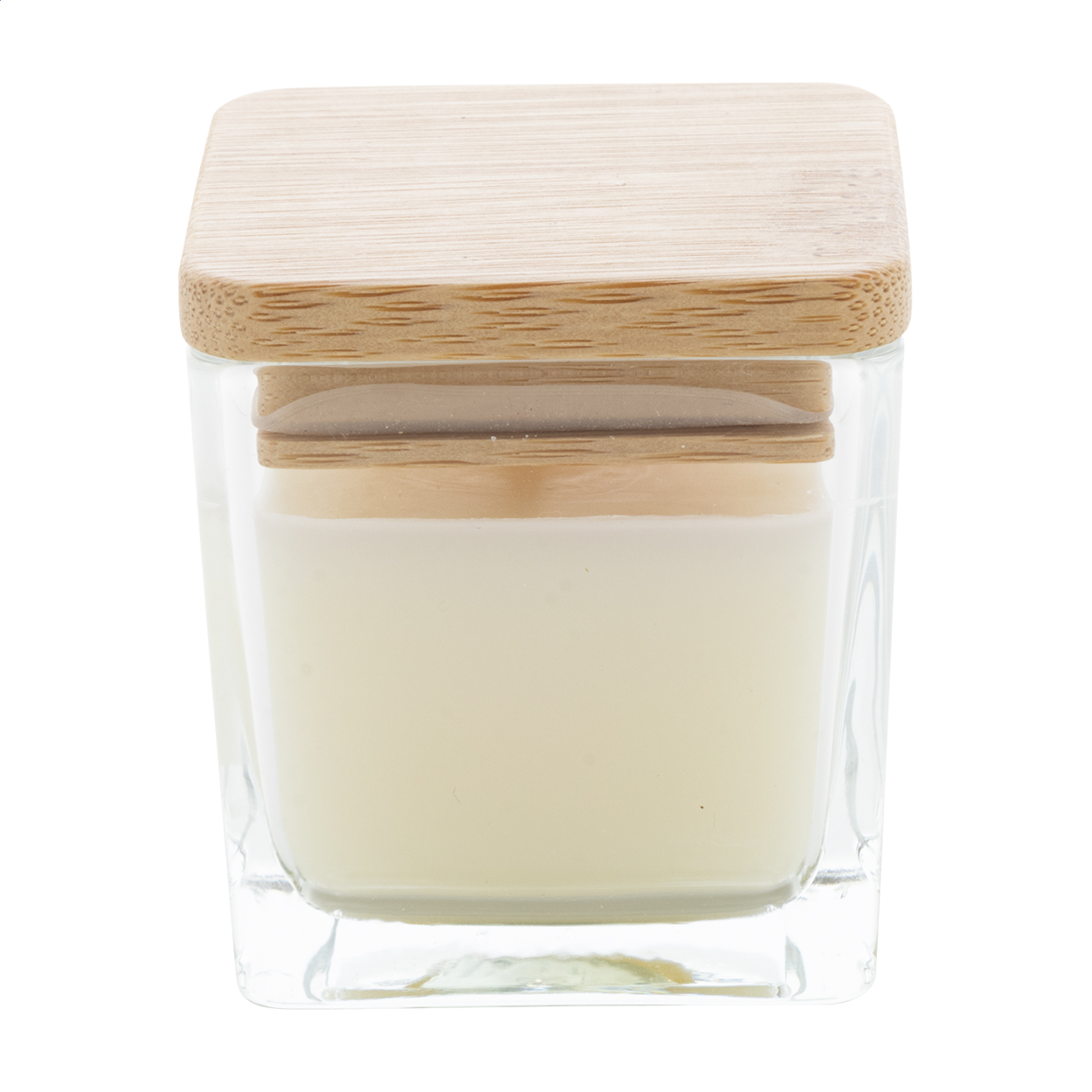 Candela profumata a base di cera vegetale in contenitore di vetro con coperchio in bambù. Quantità di cera: 50 grammi. Tempo di combustione: 8 ore. Confezione in scatola di cartoncino kraft.