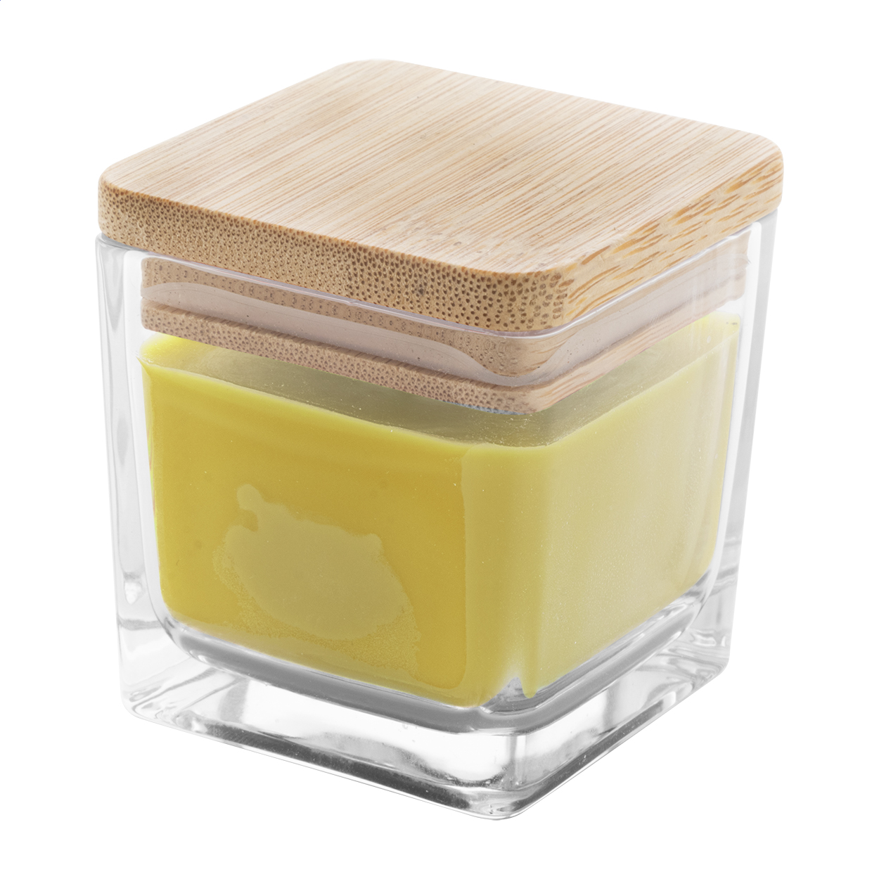 Candela profumata a base di cera vegetale in contenitore di vetro con coperchio in bambù. Quantità di cera: 50 grammi. Tempo di combustione: 8 ore. Confezione in scatola di cartoncino kraft.