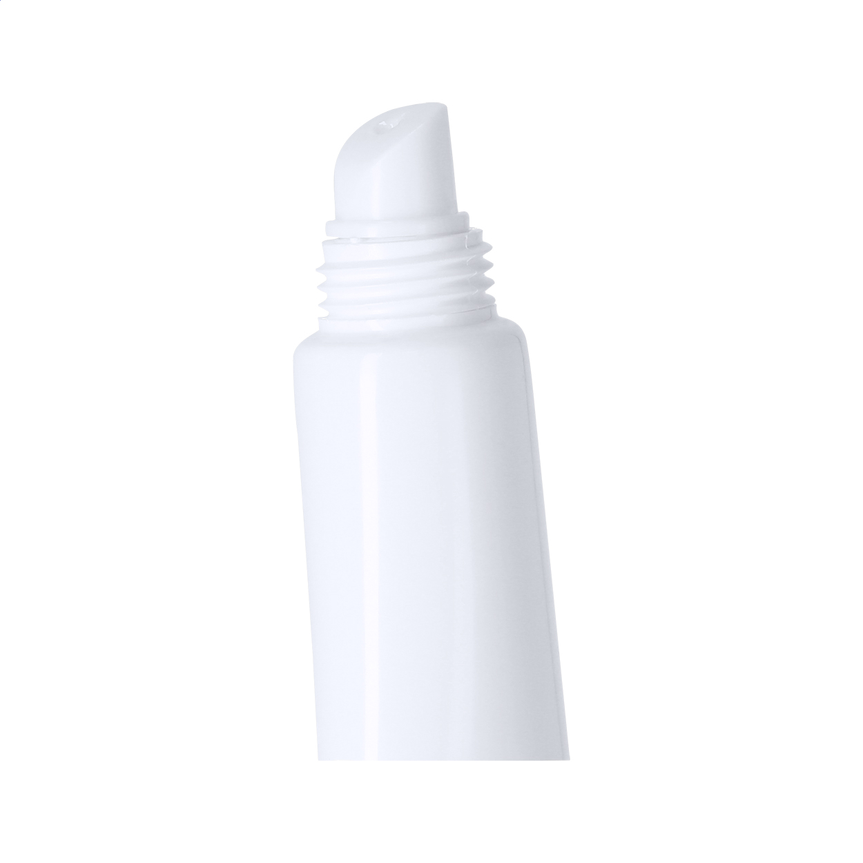 Balsamo per le labbra all'aroma di vaniglia in tubetto di plastica, con protezione SPF15.