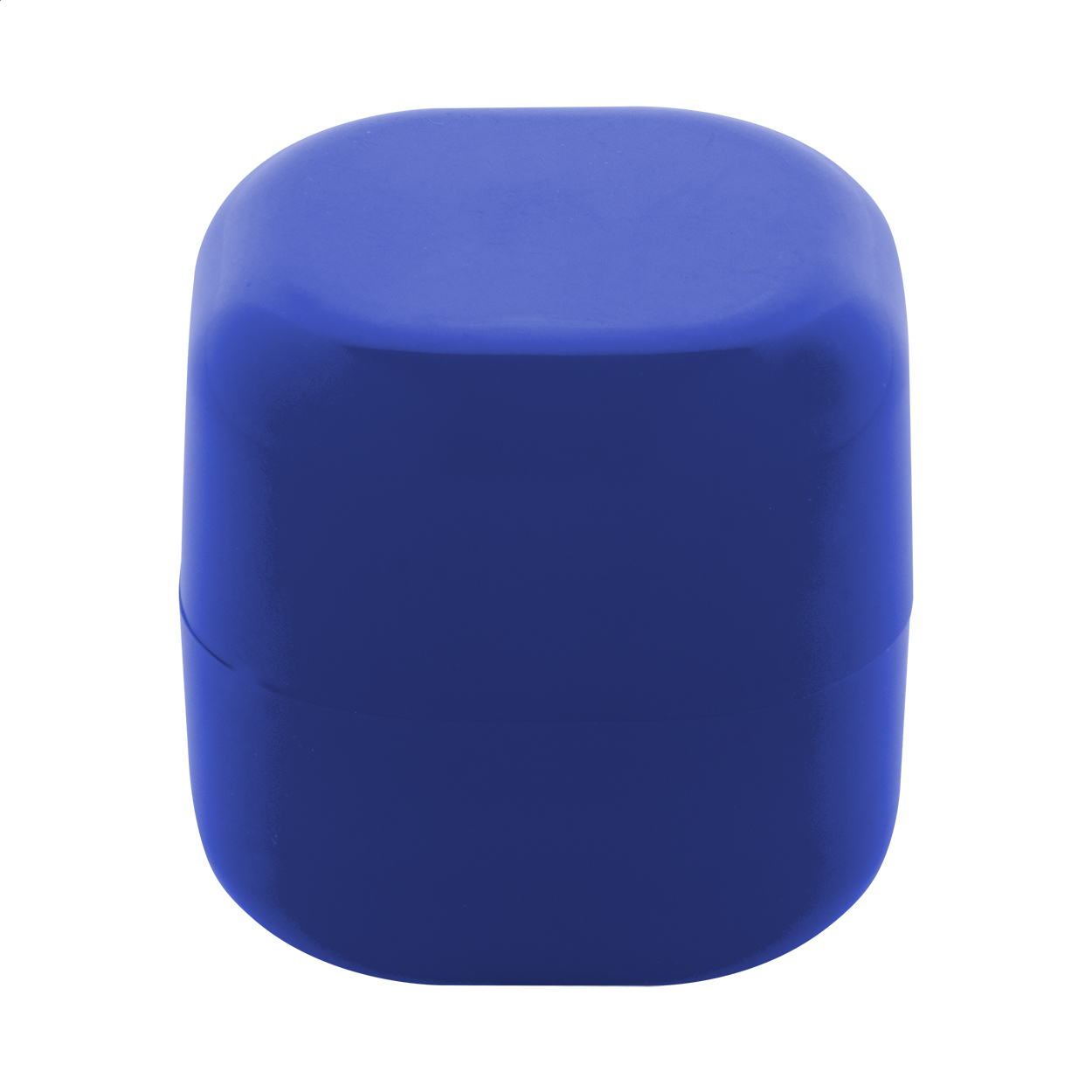 Balsamo labbra alla vaniglia in un contenitore in ABS riciclato a forma di cubo, con protezione SPF15. Il prodotto non contiene sostanze di origine animale.