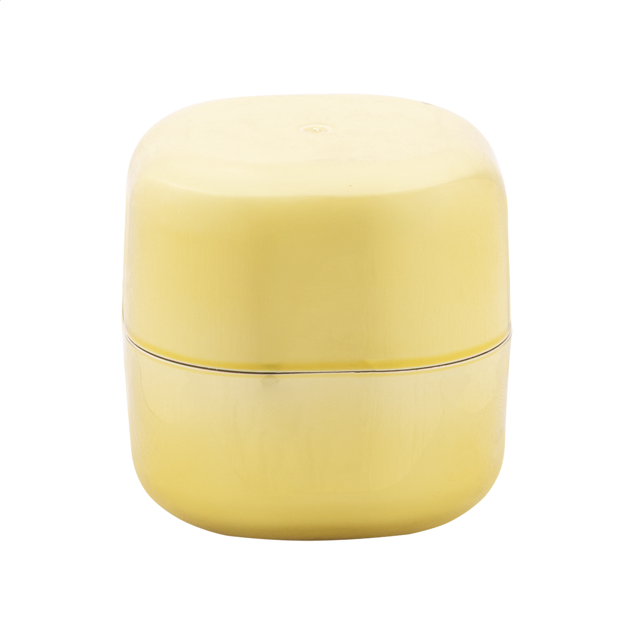 Balsamo per labbra con protezione SPF15 alla vaniglia in contenitore di ABS metallizzato a forma di cubo. Il prodotto non contiene ingredienti di origine animale.