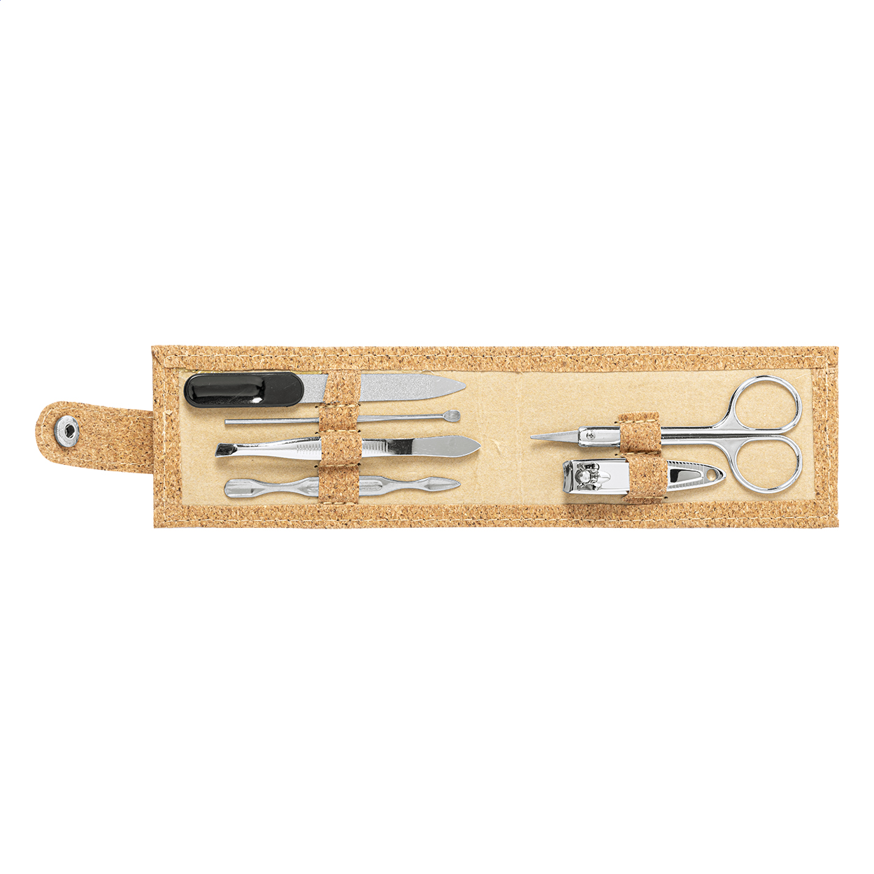 Set manicure da 6 pezzi in astuccio di sughero naturale.