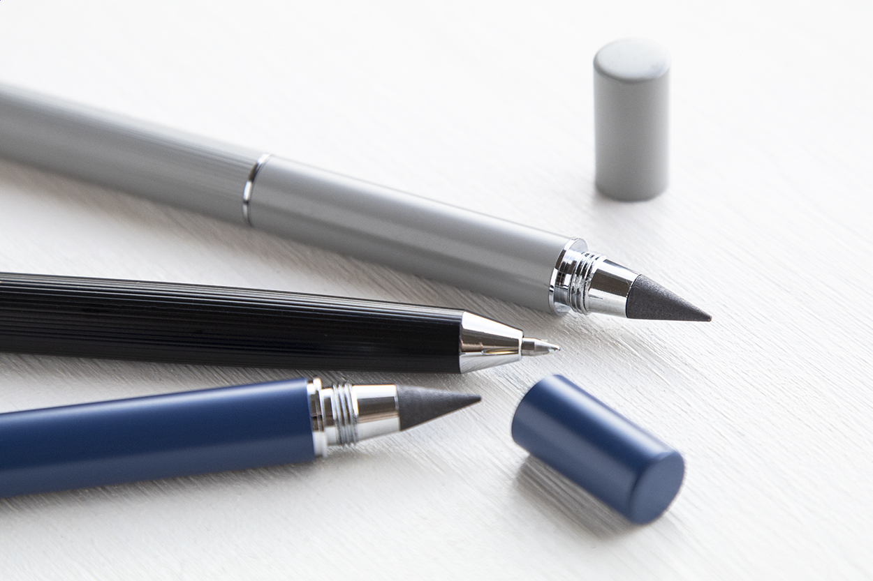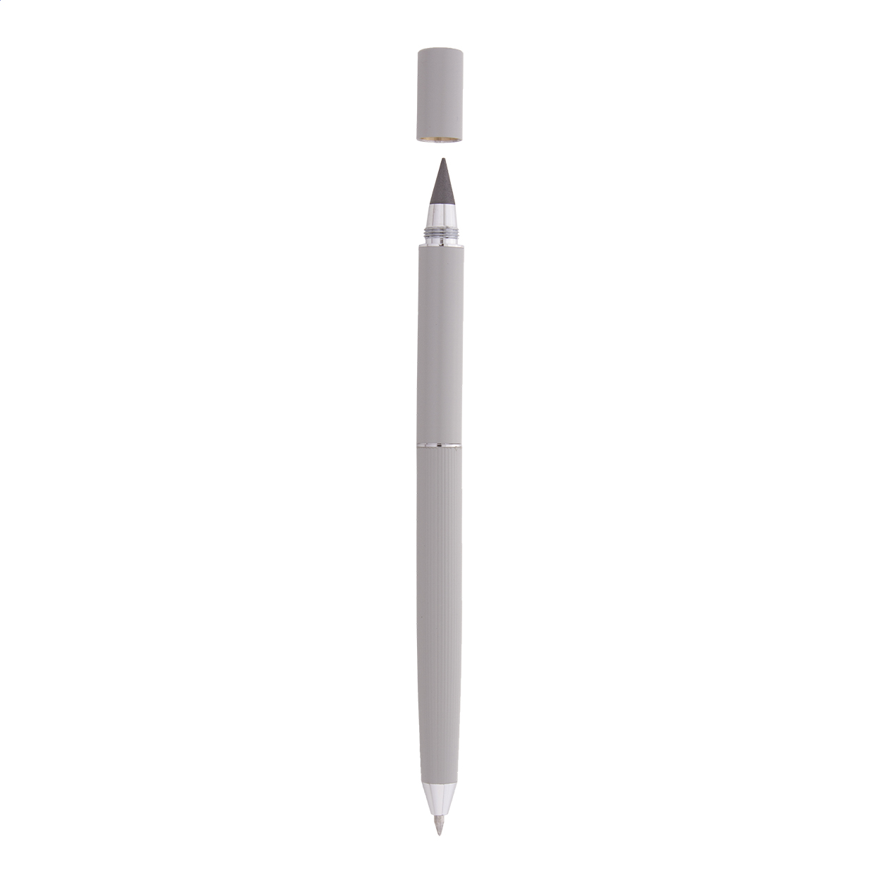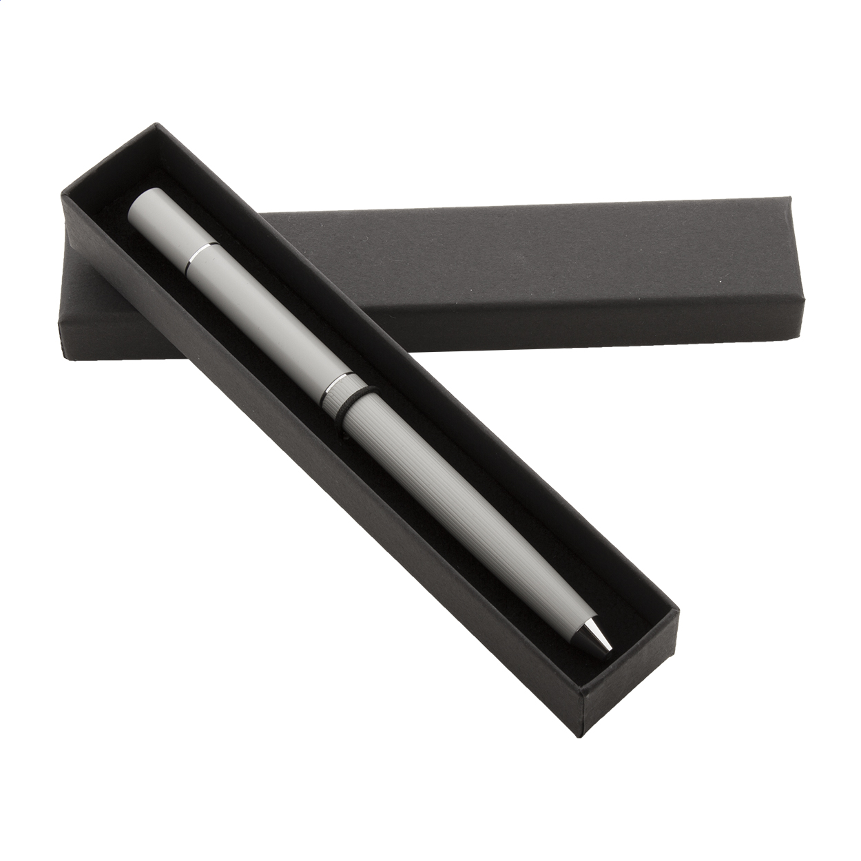Penna a sfera con meccanismo a rotazione e penna senza inchiostro in metallo 2in1 in confezione regalo nera. Con refill blu e punta in lega metallica che ossida la carta.
