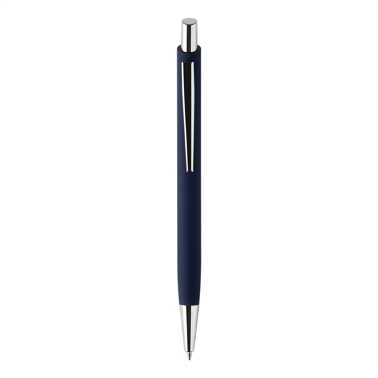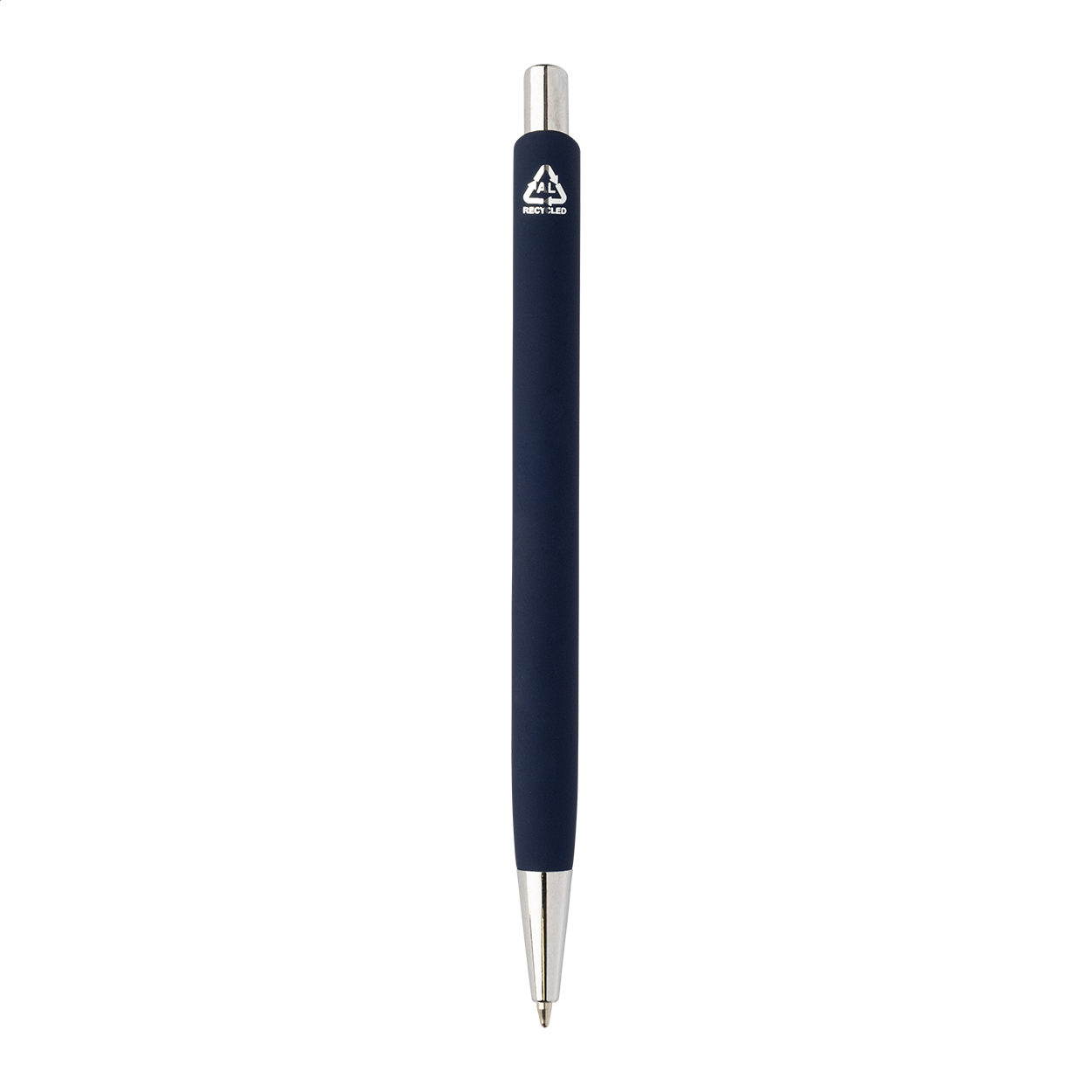 Set regalo da 2 pezzi in confezione regalo in cartoncino nero. Il set comprende una penna a sfera in alluminio riciclato con finitura gommata e refill blu, un portachiavi in acciaio riciclato con finitura gommata. Entrambi gli articoli presentano un rivestimento speciale per l'incisione laser a specchio.