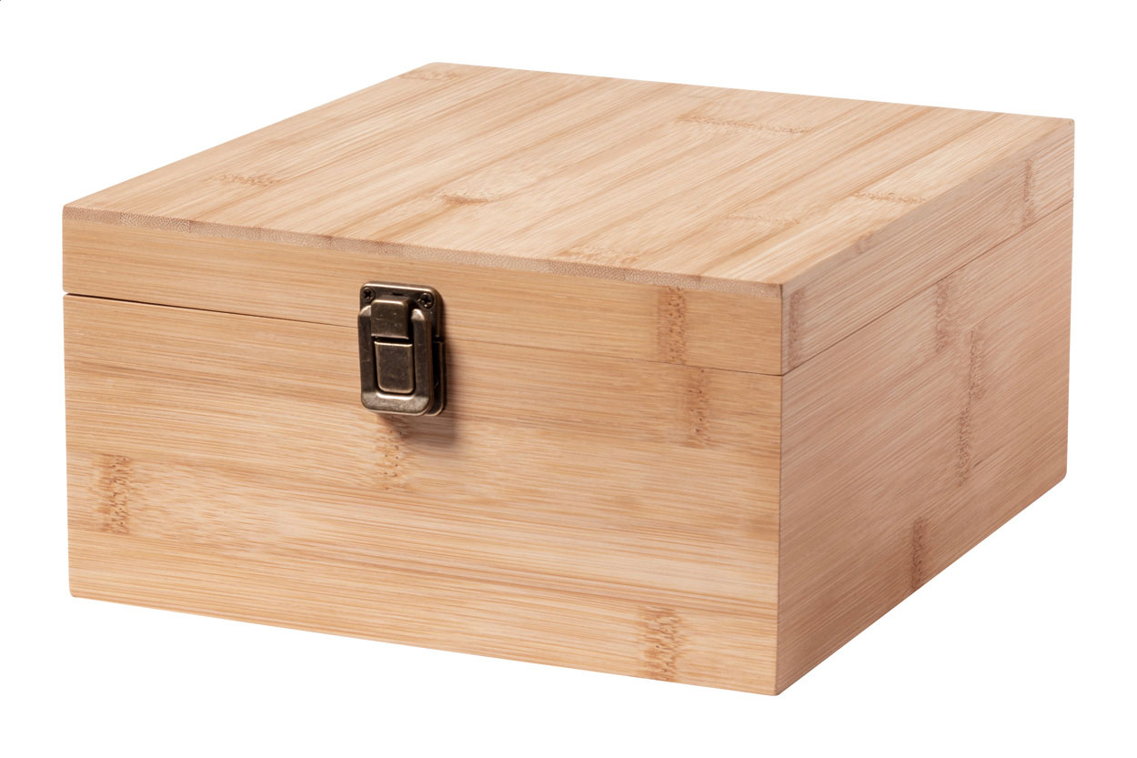 Elegante set da vino in scatola regalo di bambù. Comprende 2 bicchieri da vino (350 ml) e un apribottiglie in acciaio inox con cavatappi.