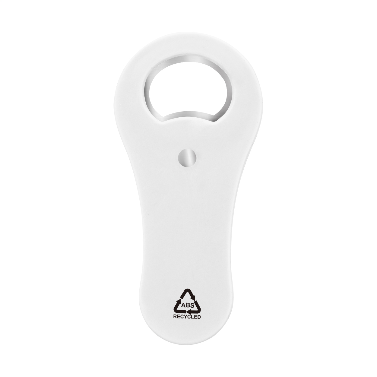 Apribottiglie in plastica ABS riciclata con magnete da frigorifero.