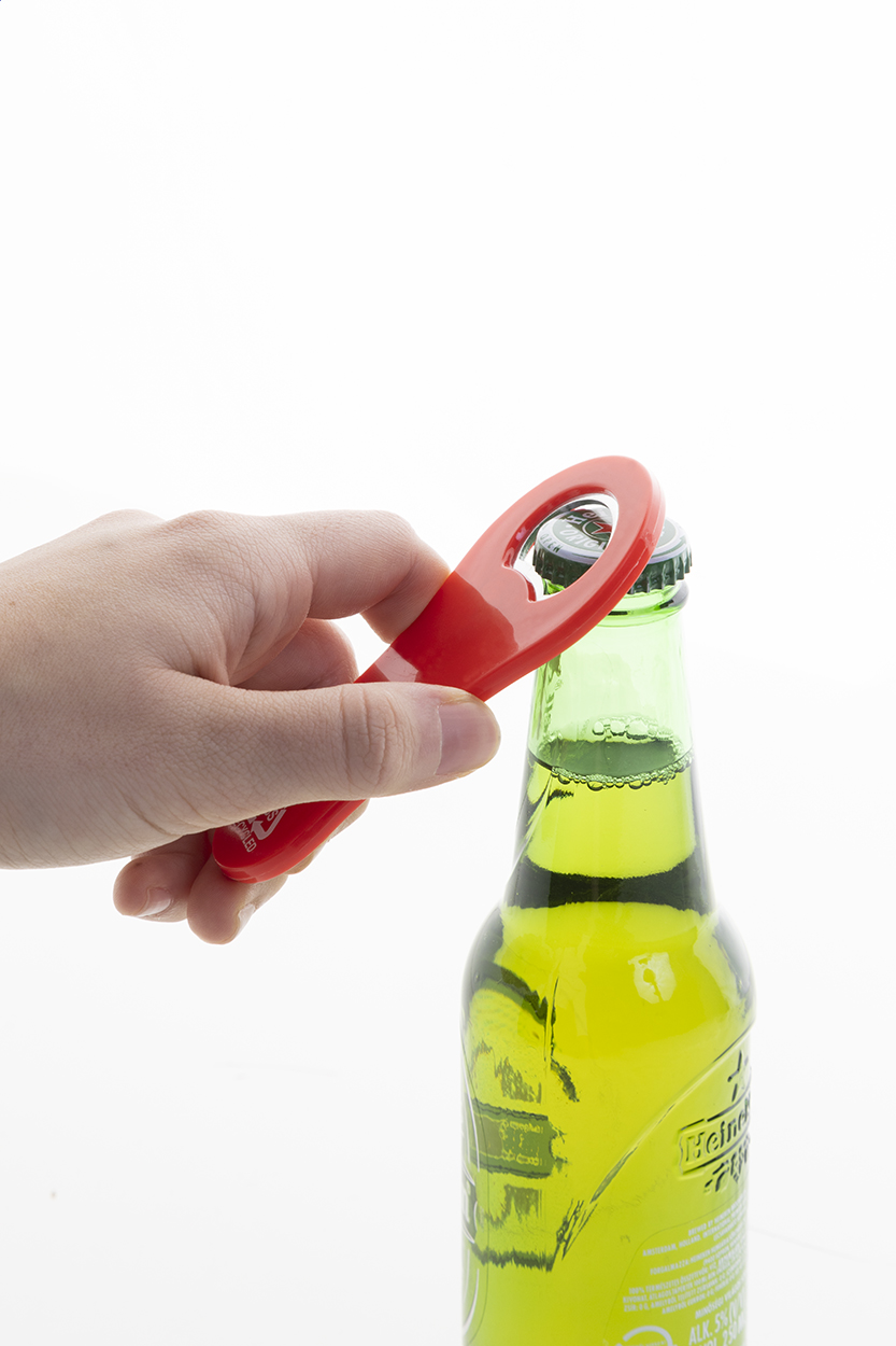Apribottiglie in plastica ABS riciclata con magnete da frigorifero.