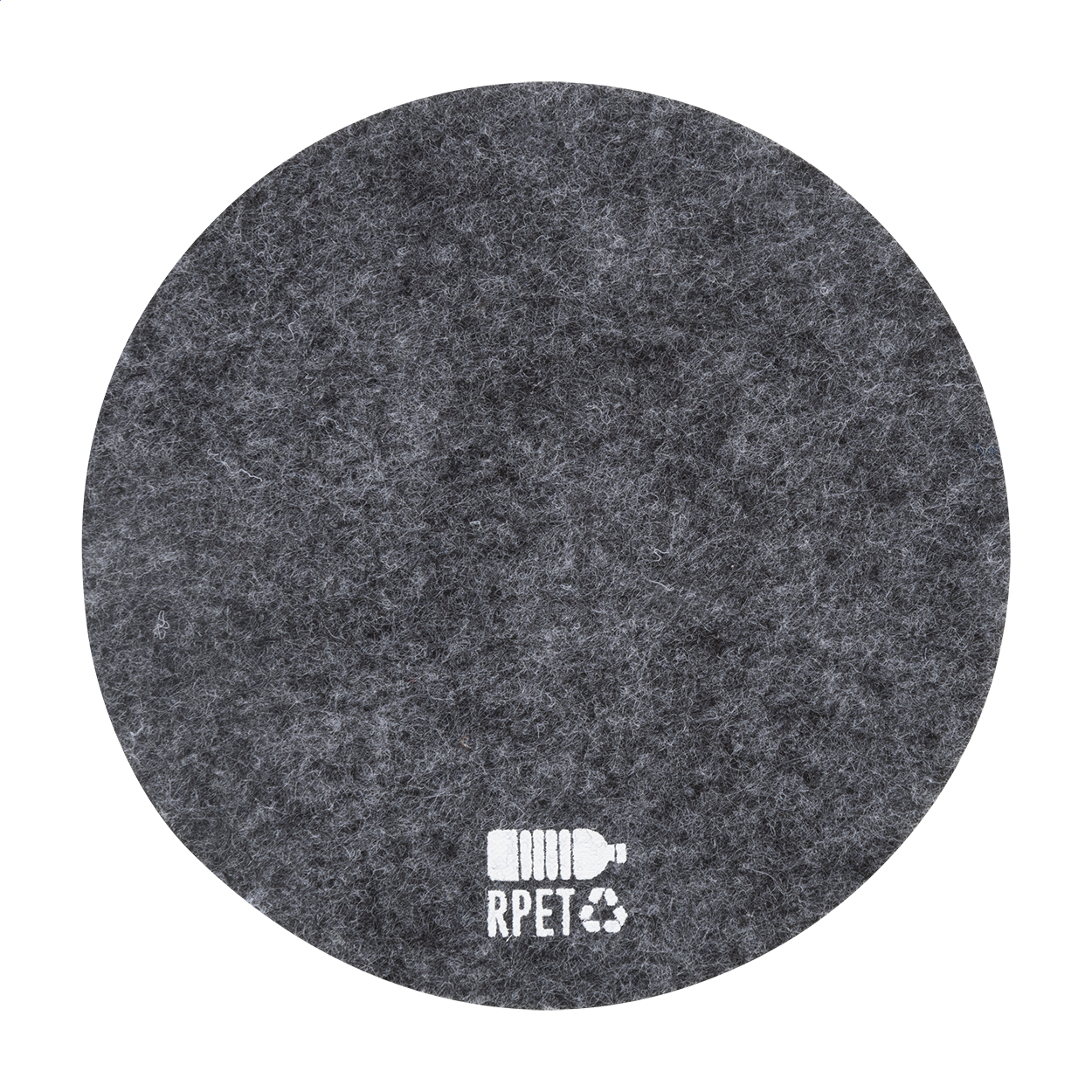 Sottobicchiere rotondo in feltro RPET, con stampa marchio RPET.