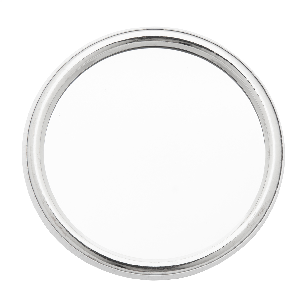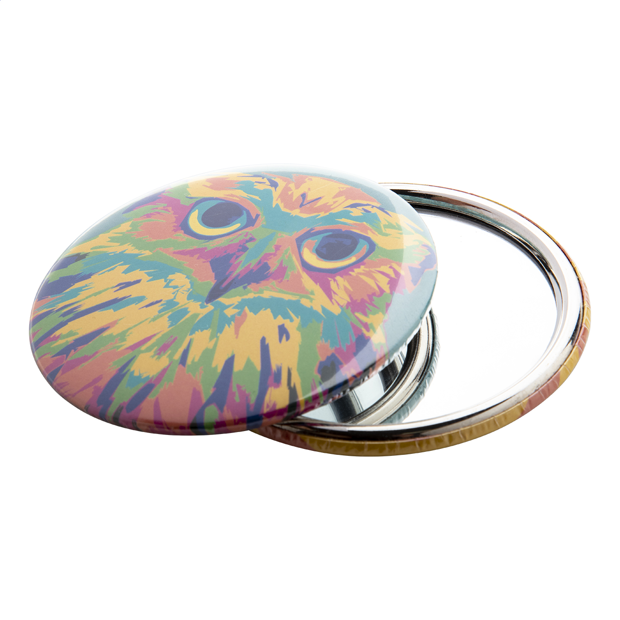 Specchietto tascabile con inserto cartaceo personalizzato a colori. Il costo comprende la stampa digitale. MOQ: 100 pezzi.