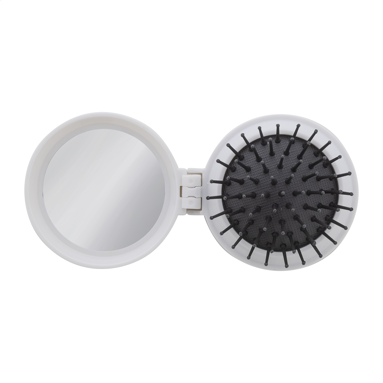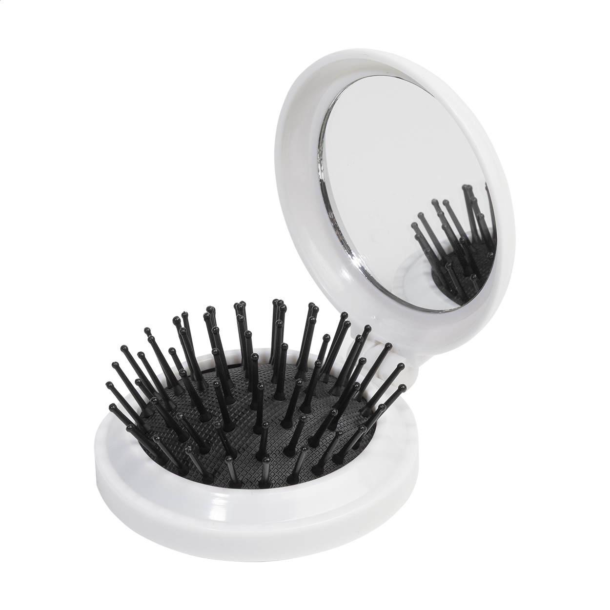 Spazzola pieghevole in ABS riciclato con specchietto.