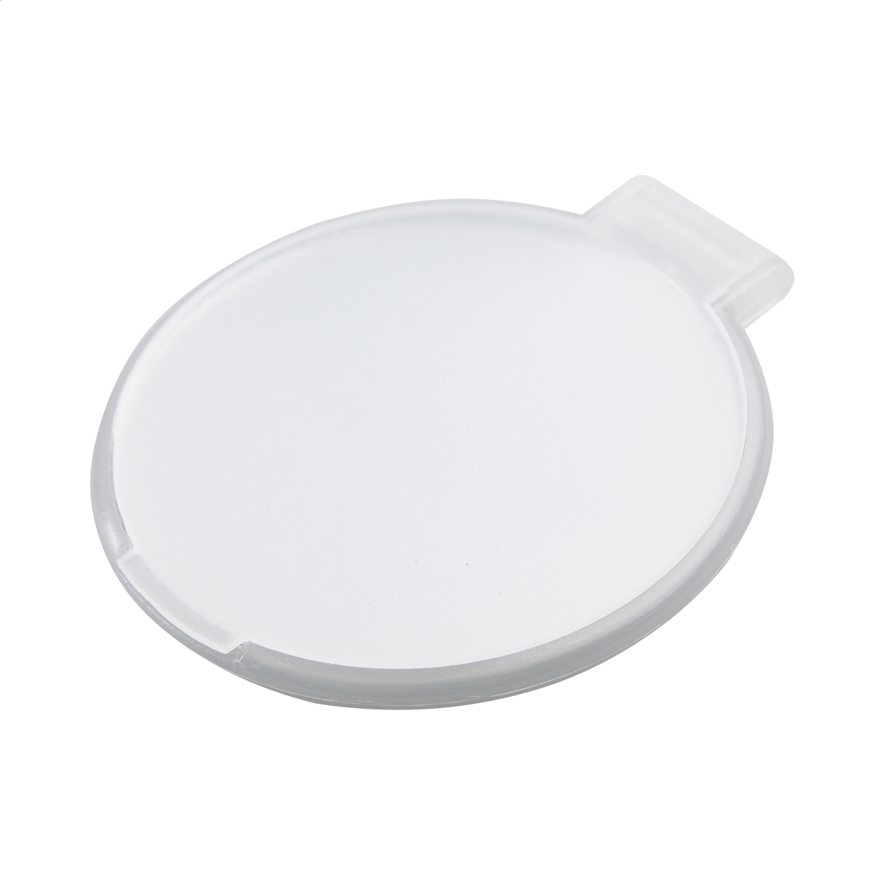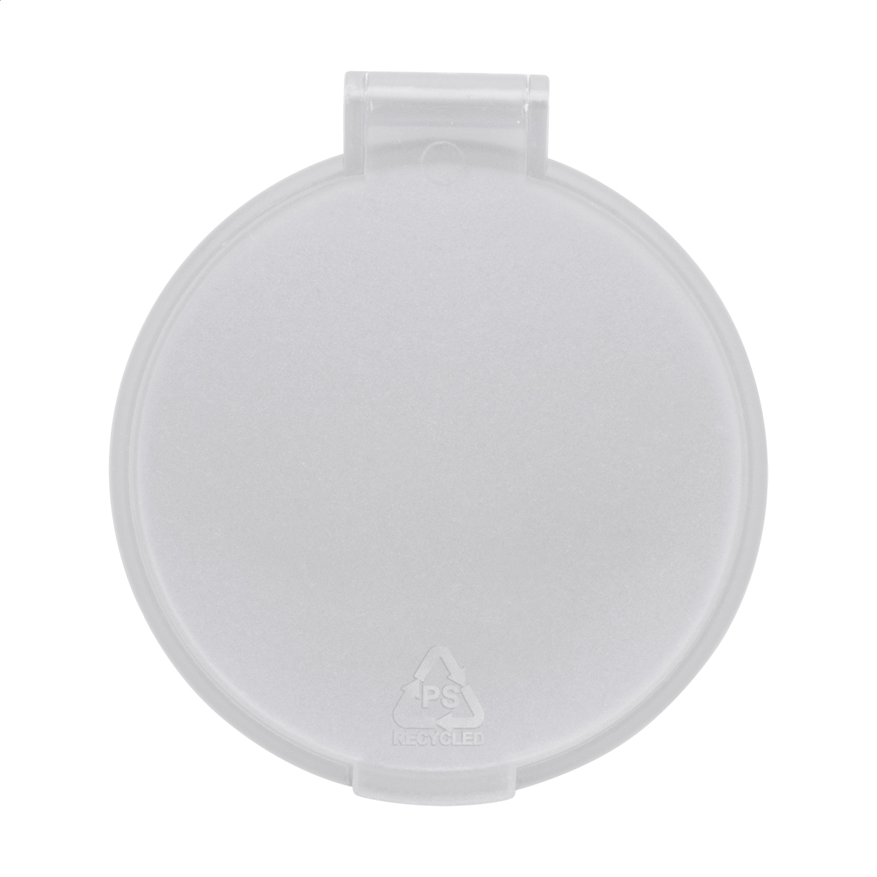 Specchietto rotondo in PS riciclato traslucido.