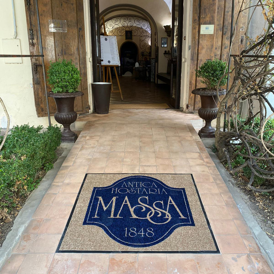 La personalizzazione tramite stampa Chromojet permette di riprodurre loghi anche complessi, impossibili da riprodurre sugli zerbini intarsiati.