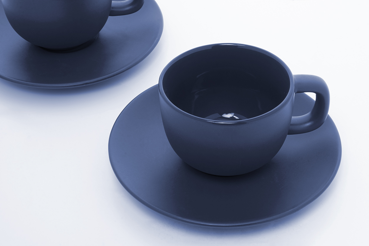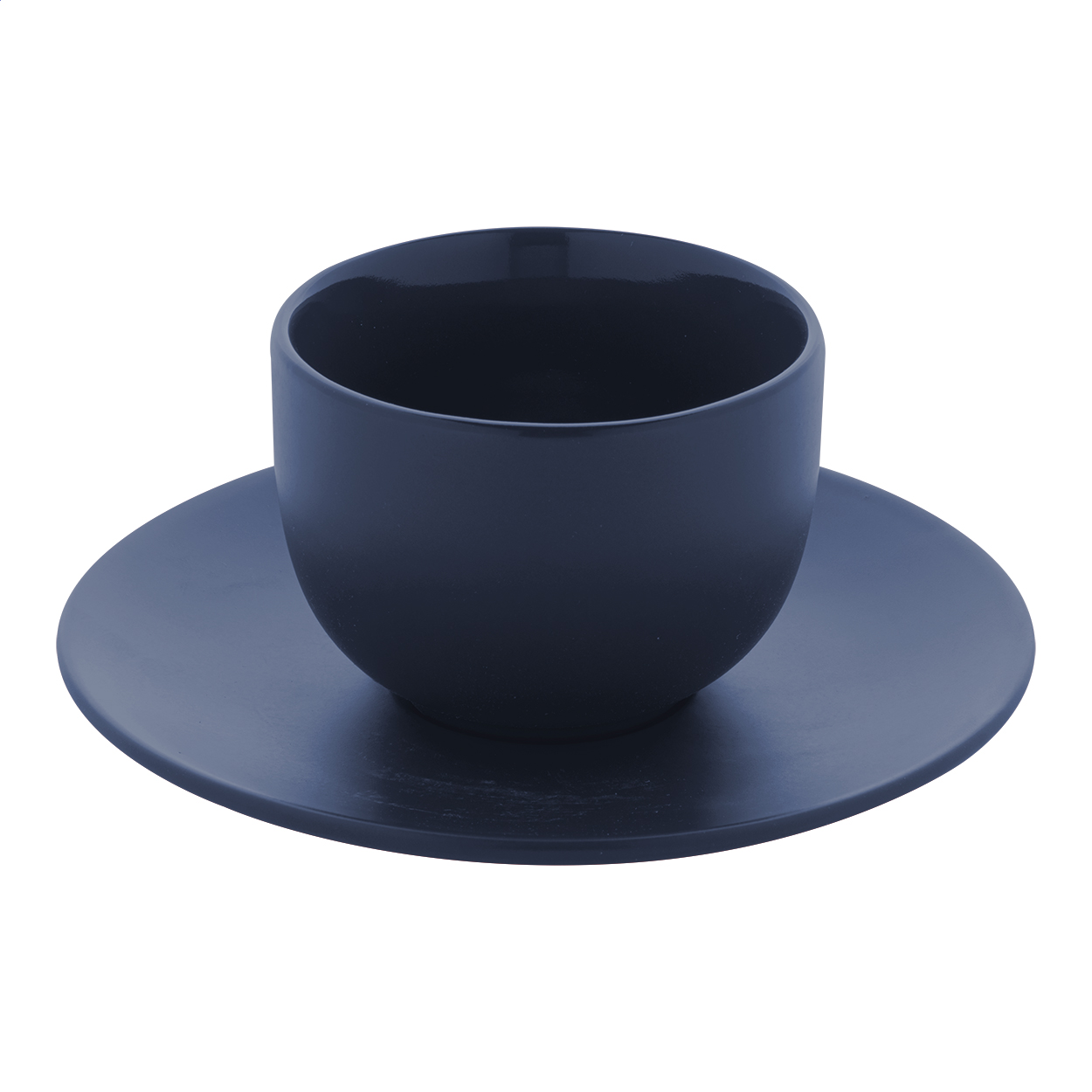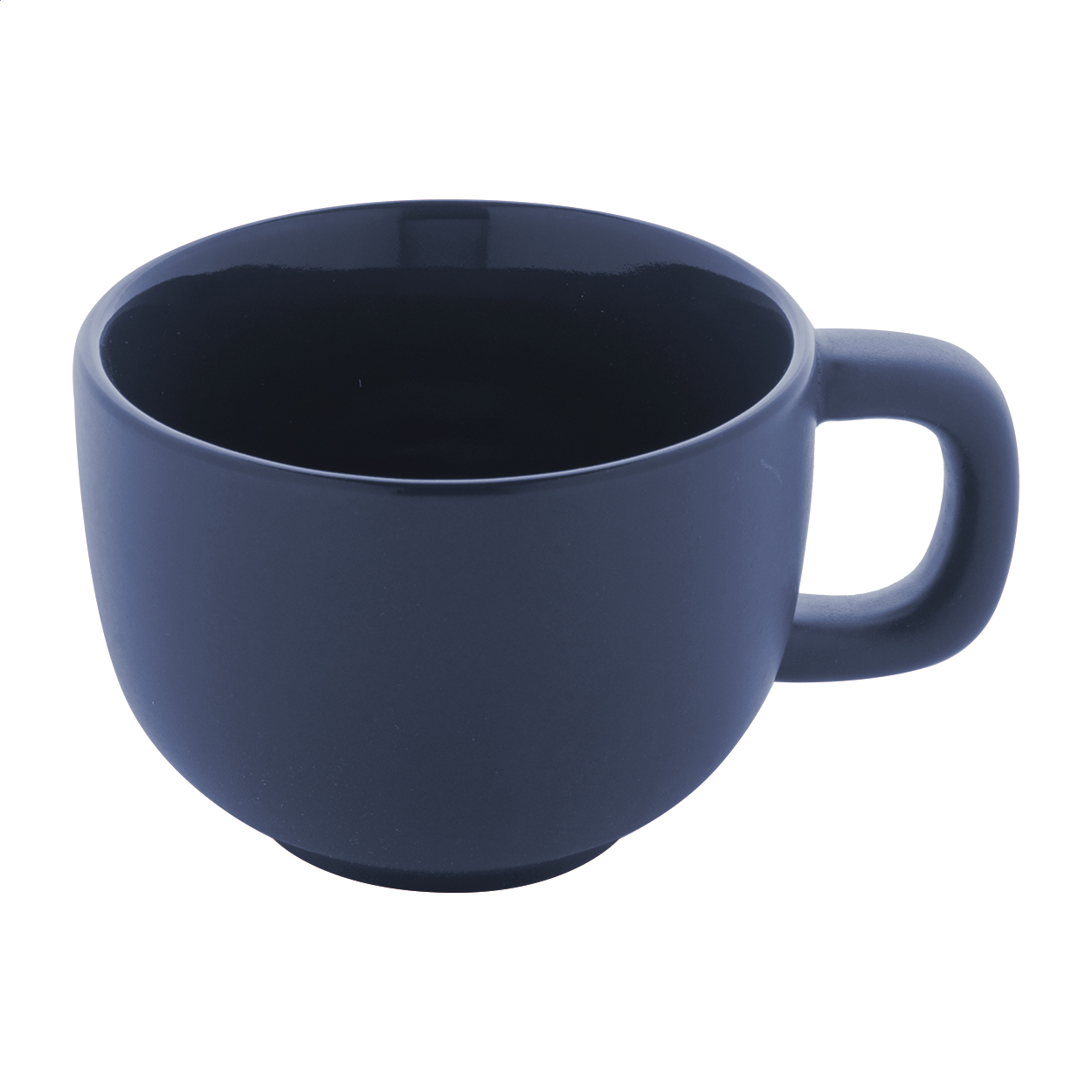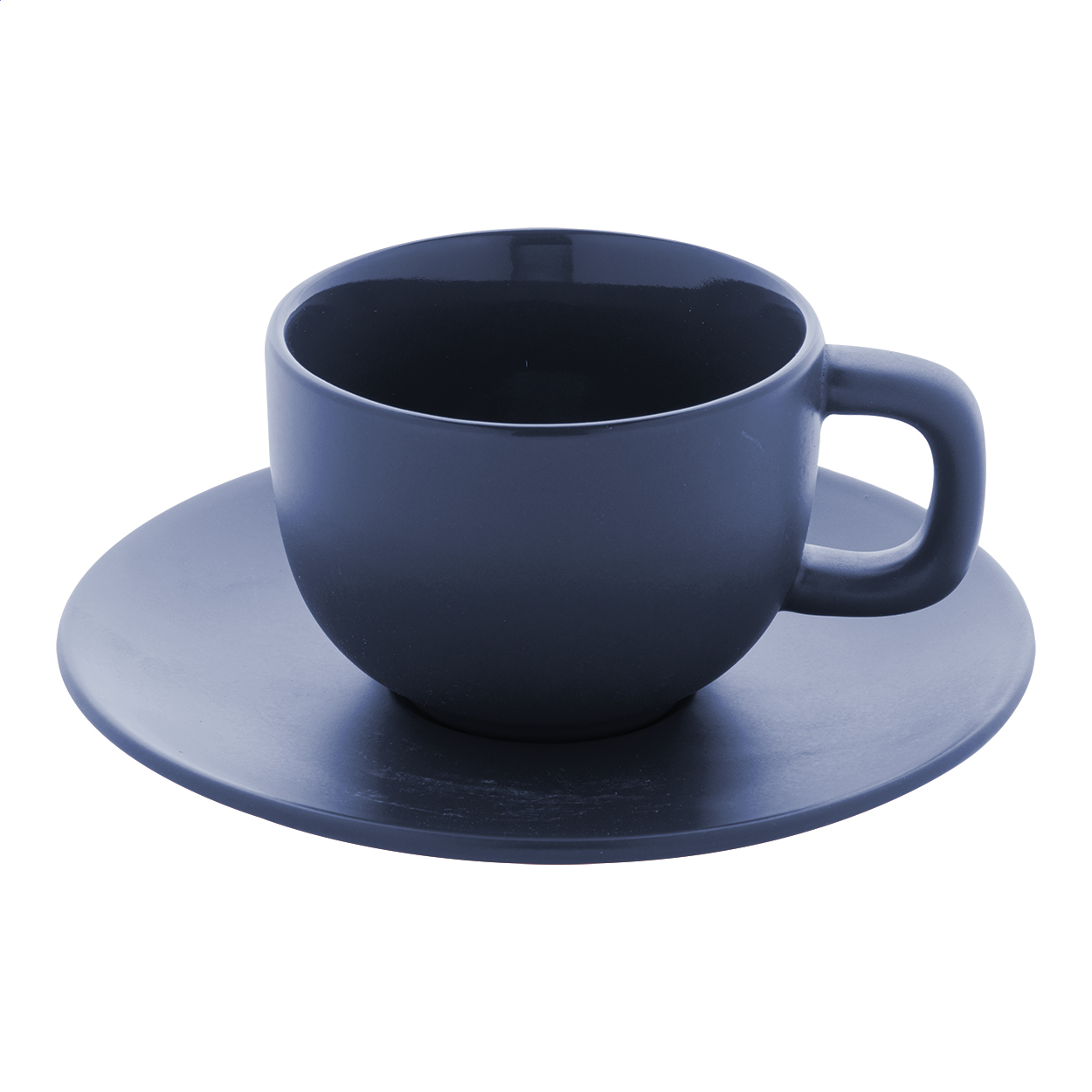 Set di tazze cappuccino da 200 ml. in ceramica di alta qualità composto da 2 tazze e da 2 piattini. Con finitura esterna opaca ed interno lucido. Confezione in scatola di cartoncino bianco.