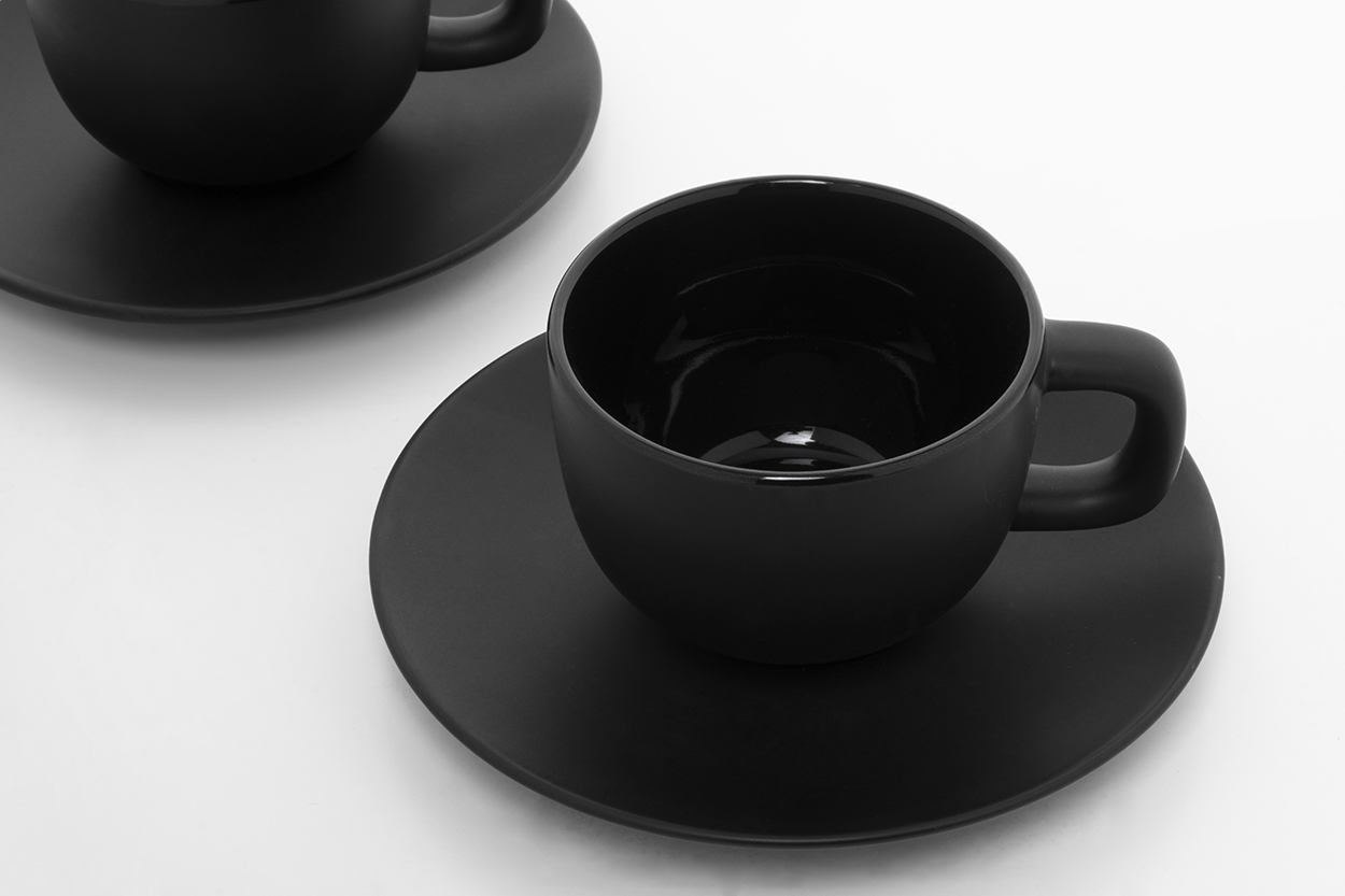 Set di tazze cappuccino da 200 ml. in ceramica di alta qualità composto da 2 tazze e da 2 piattini. Con finitura esterna opaca ed interno lucido. Confezione in scatola di cartoncino bianco.