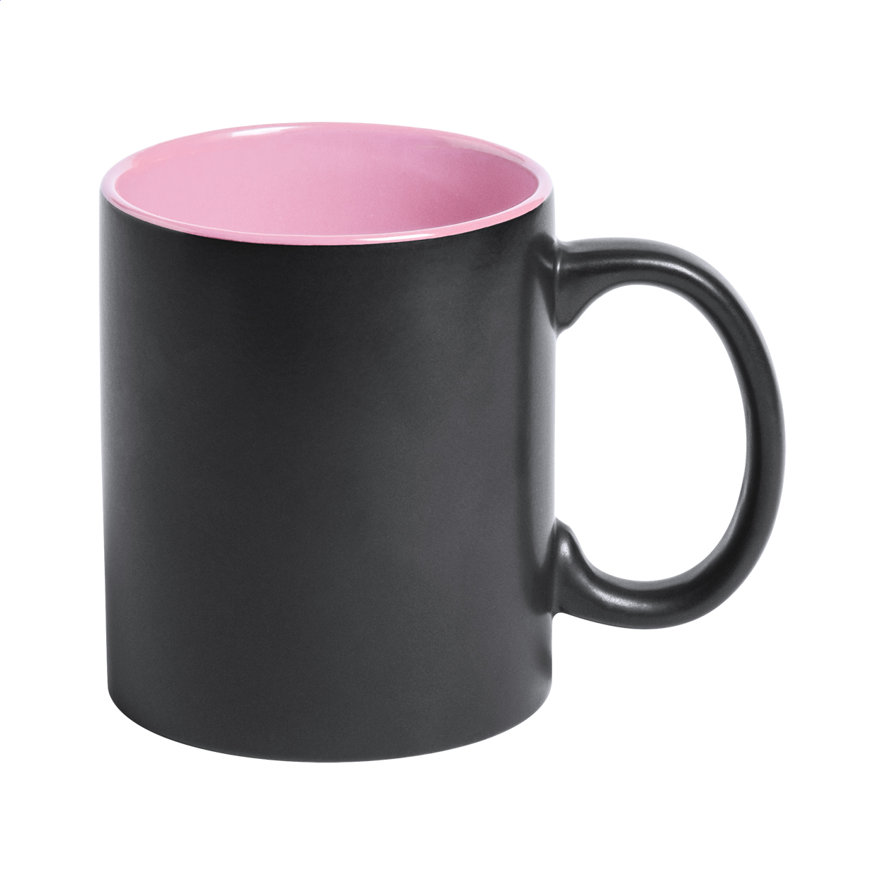 Tazza mug in ceramica nera da 350 ml. con interno colorato e speciale rivestimento esterno ideale per l'incisione, il logo inciso avrà lo stesso colore dell'interno della tazza. Fornita in confezione regalo.