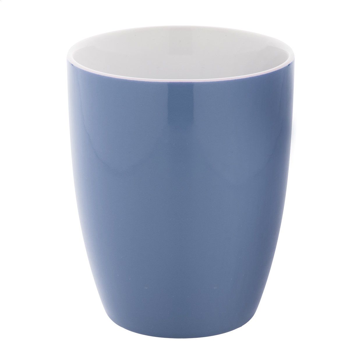 Tazza mug in ceramica colorata di alta qualità da 340 ml con interno bianco, confezionata in scatola di cartoncino kraft