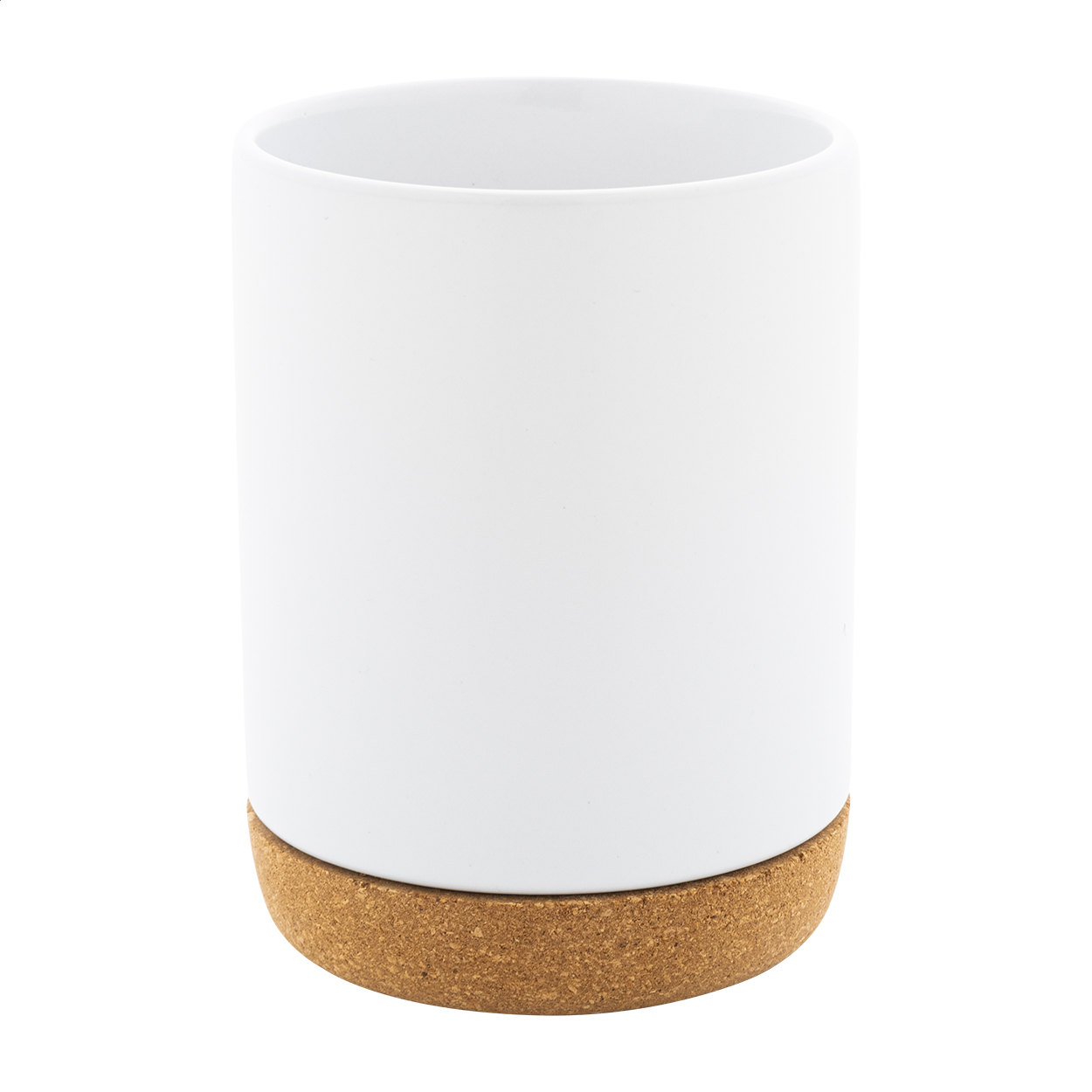 Tazza mug in ceramica di alta qualità da 280ml. con base in sughero naturale, finitura esterna opaca ed interna lucida. Confezionata in scatola di cartoncino kraft.