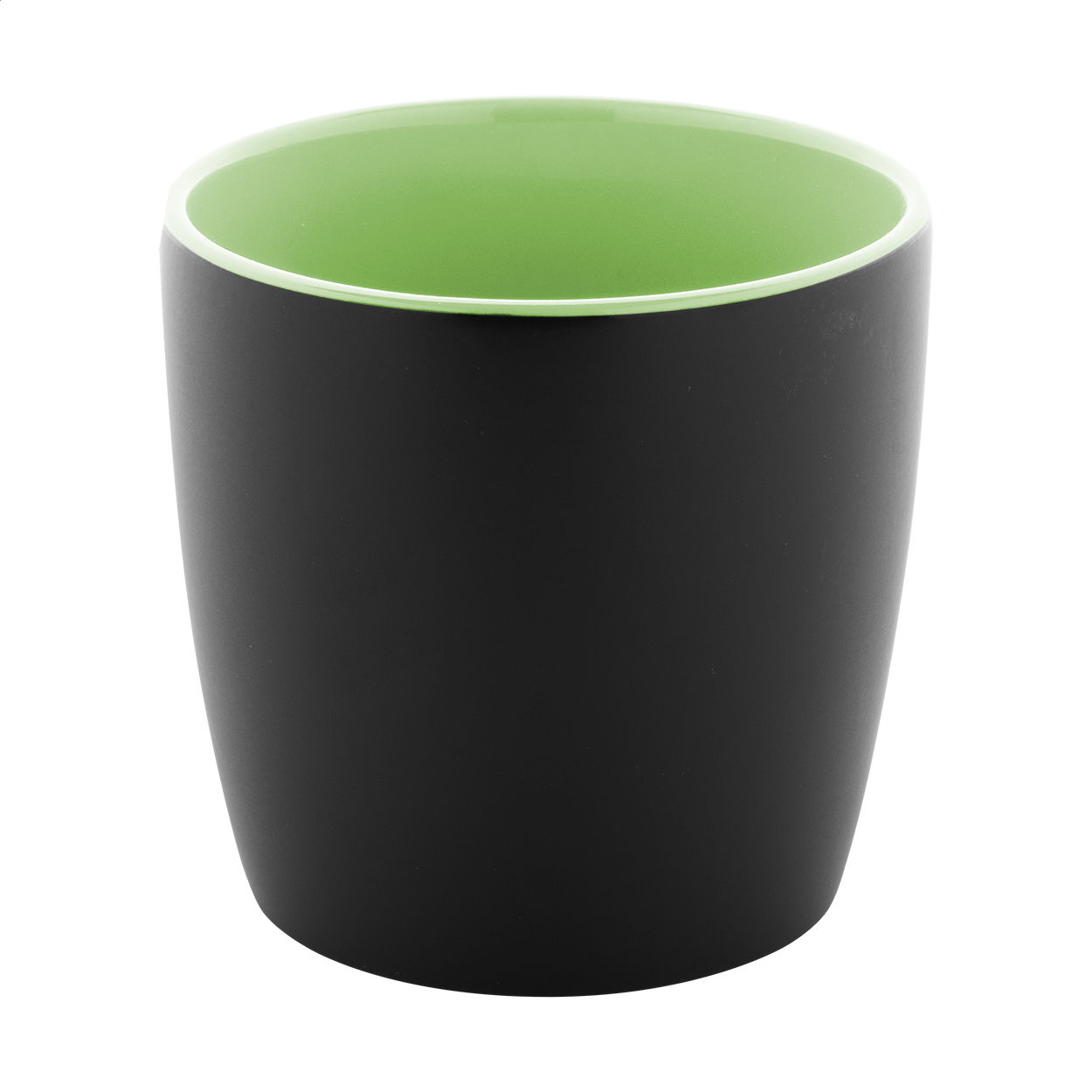 Tazza mug in ceramica di alta qualità da 300ml. con finitura esterna nera opaca e interna colorata lucida. Confezionata in scatola di cartoncino kraft.