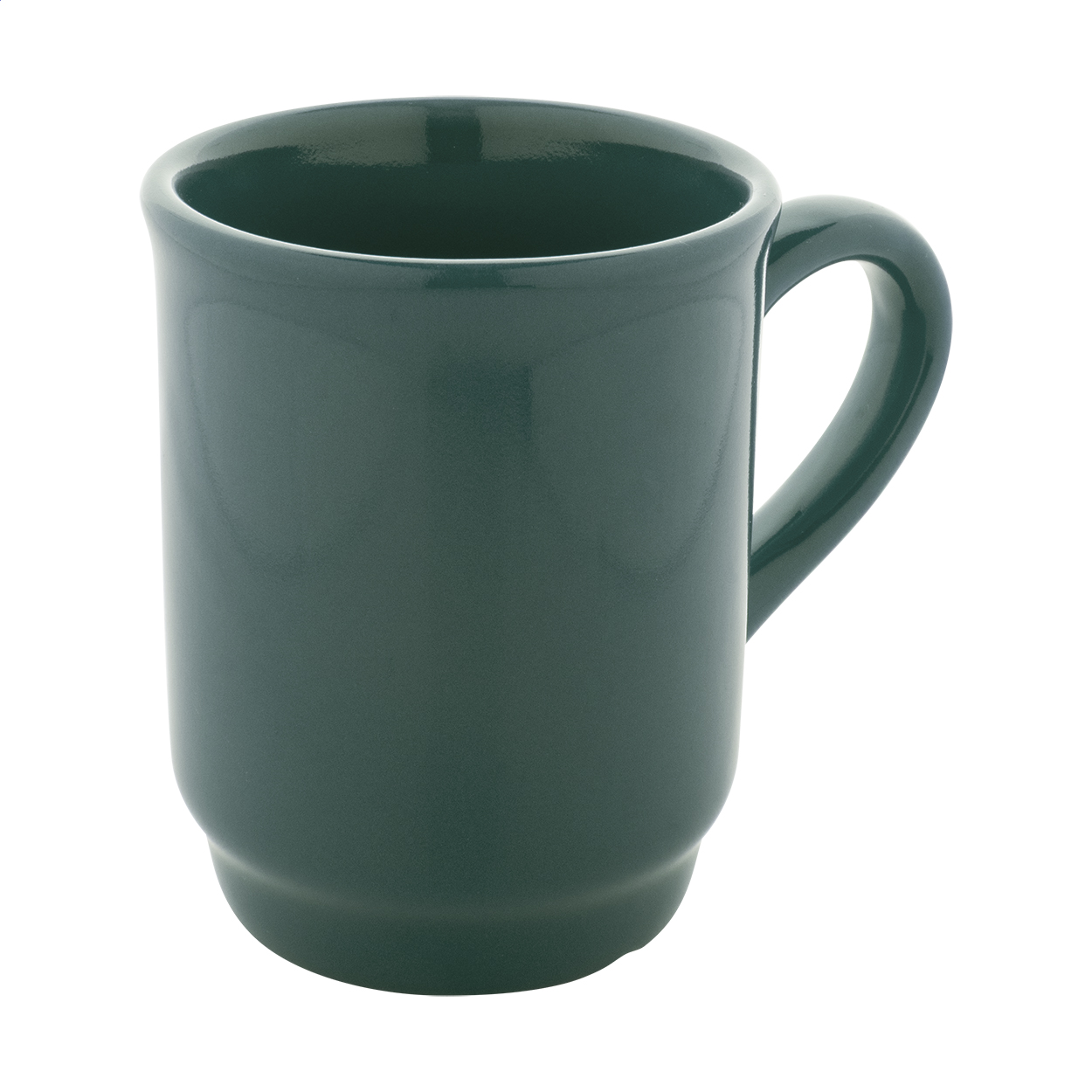 Tazza mug impilabile in ceramica da 220 ml. con finitura lucida colorata, ideale per servire il vin brûlé in occasione di eventi o mercati. Fornita in scatola di cartoncino kraft.