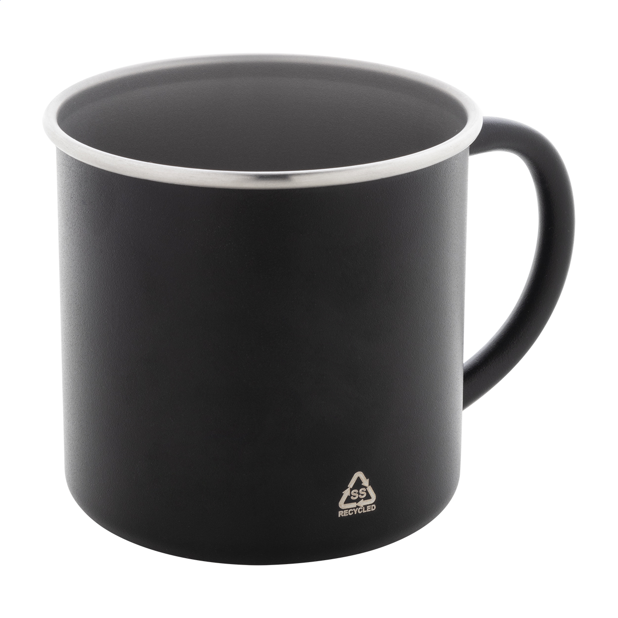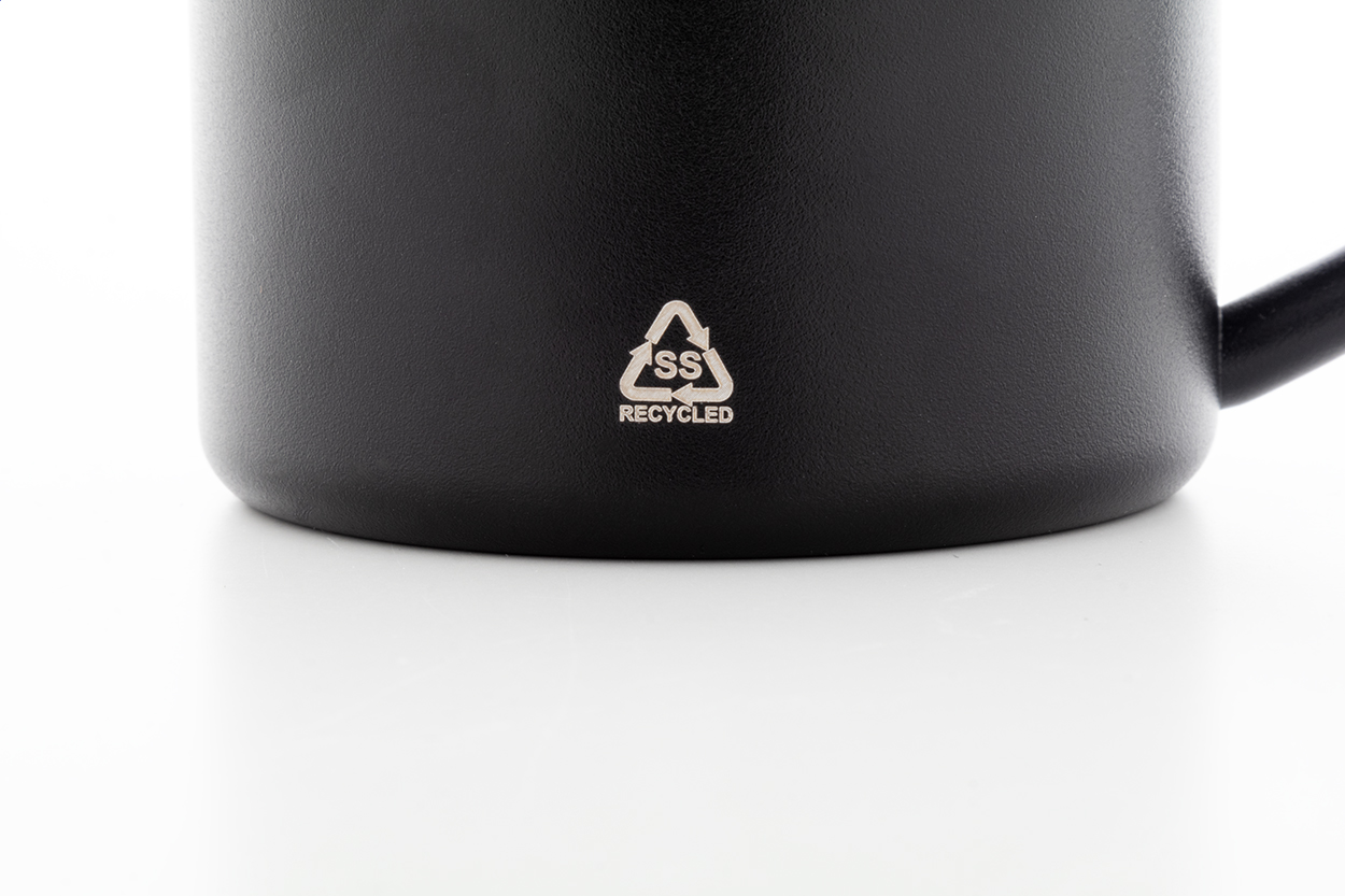 Tazza mug da 300ml. in acciaio inossidabile riciclato a parete singola. Confezione in scatola di cartoncino kraft.
