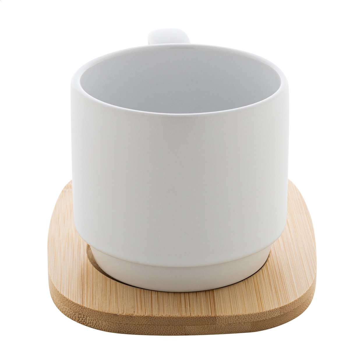 Tazza mug in ceramica di alta qualità da 220 ml. con finitura esterna opaca e interna lucida e piccolo vassoio di servizio in bambù.