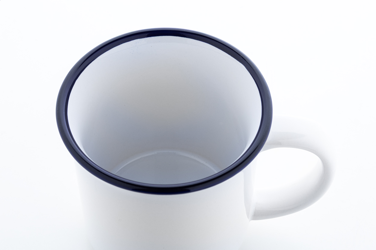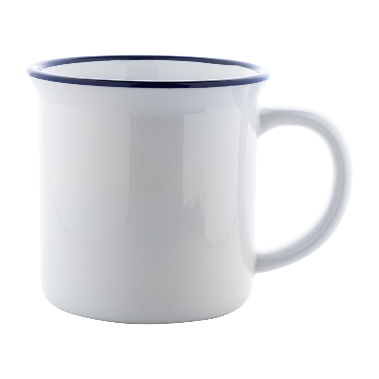 Tazza mug in ceramica 300 ml. in stile vintage con bordo colorato, adatta per la stampa in sublimazione. Confezione regalo.