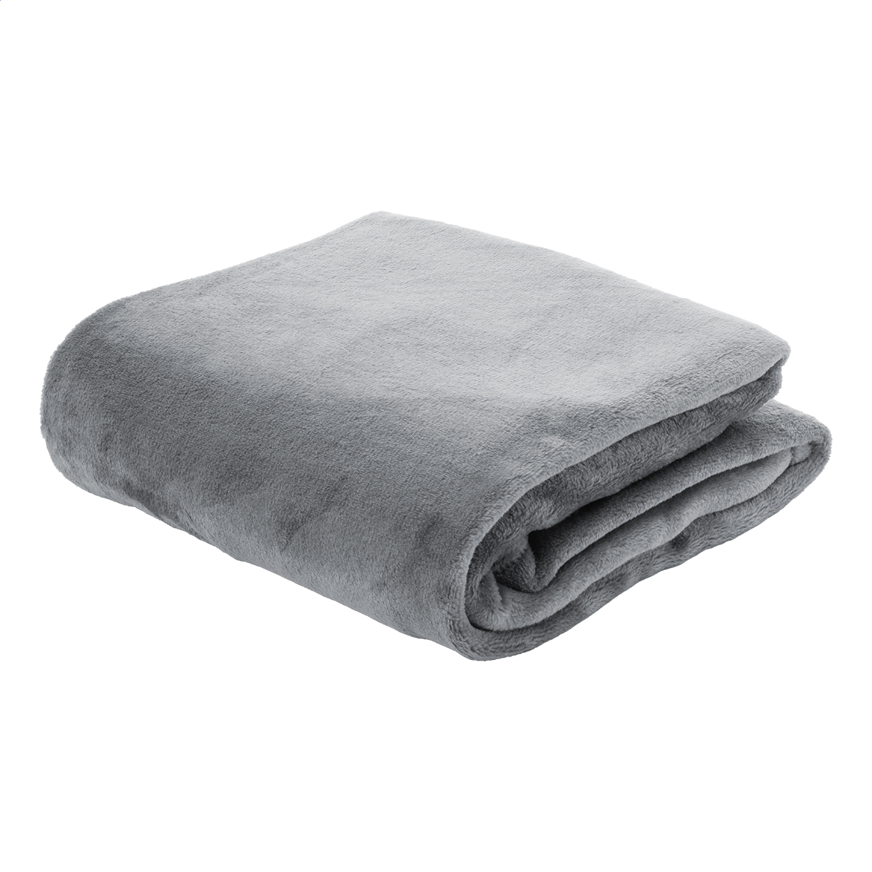 Coperta in pile di flanella RPET, 260 gr/m². Confezionata con nastro e cartoncino stampabile.
