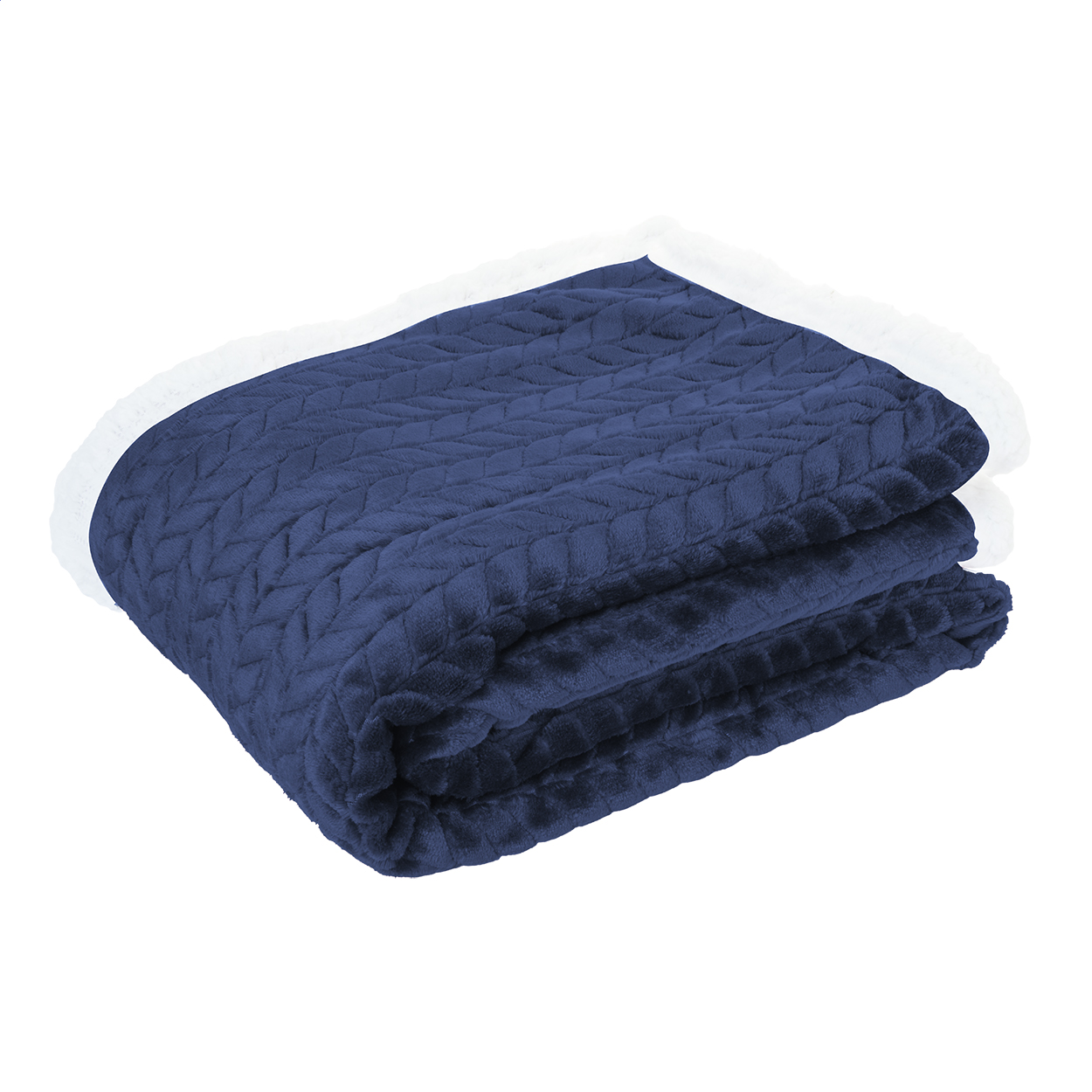 Coperta in RPET a doppio strato con motivo jacquard. Con pile di flanella RPET da 240 g/m² e fodera reversibile in pile sherpa RPET da 210 g/m². Confezionata con nastro e cartoncino stampabile.