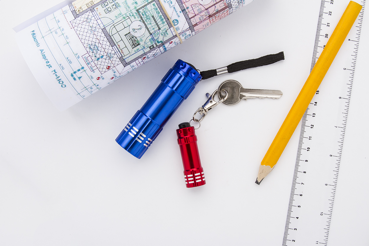 Mini torcia in alluminio con 3 LED e moschettone. Batterie a bottone incluse.