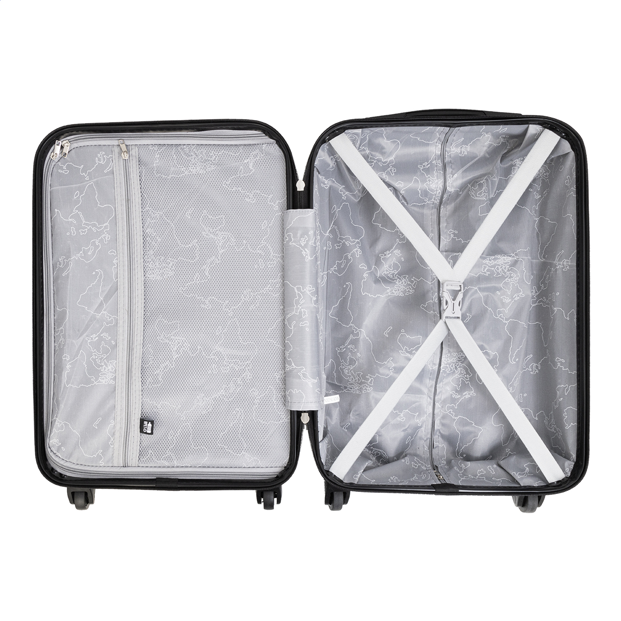 Trolley rigido da 20 pollici in RPET con 4 ruote, maniglia telescopica e chiusura a combinazione. Con rivestimento interno in RPET e cinghie di fissaggio elastiche. Con piastra metallica per l'incisione del logo