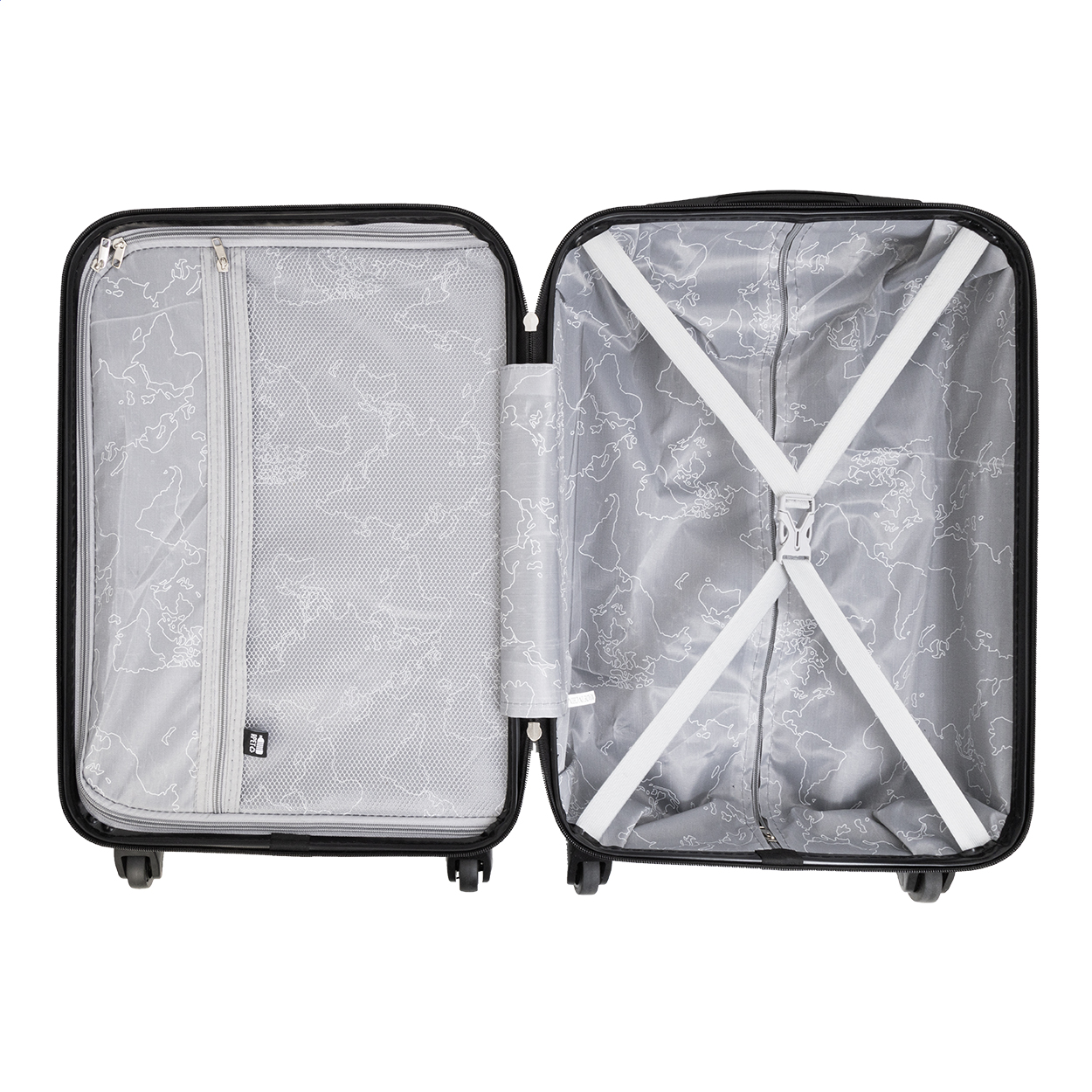 Trolley rigido da 20 pollici in RPET con 4 ruote, maniglia telescopica e chiusura a combinazione. Con rivestimento interno in RPET e cinghie di fissaggio elastiche. Con piastra metallica per l'incisione del logo