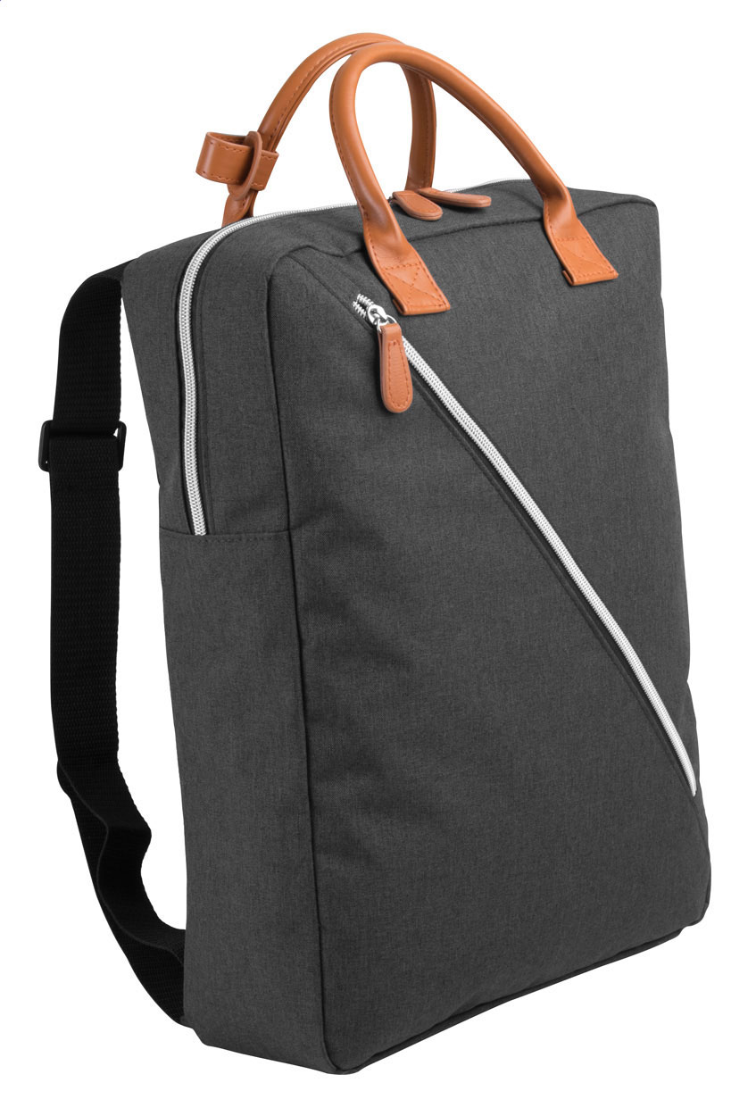 Zaino con scomparti e cerniera, tasca imbottita per computer portatile, manici in pelle PU e tracolla regolabile. Poliestere duotone 300D.