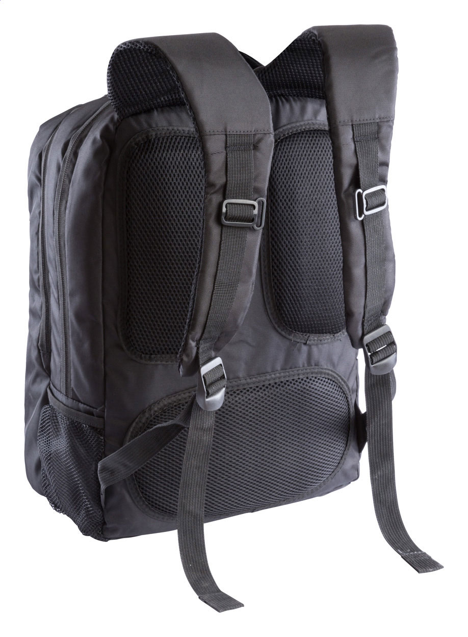 Zaino con multipli scomparti e chiusura a cerniera, spallacci imbottiti, schienale e scomparti per computer portatile (15"). Nylon 600D.