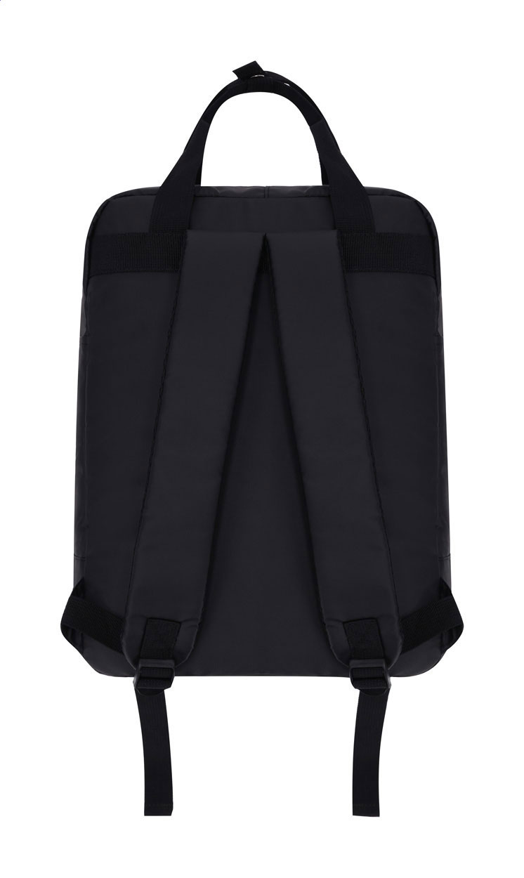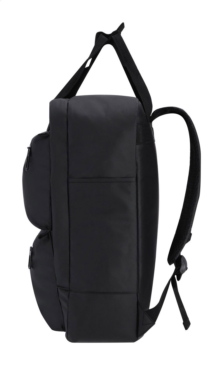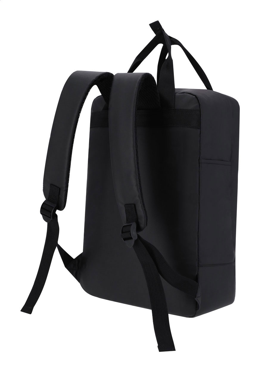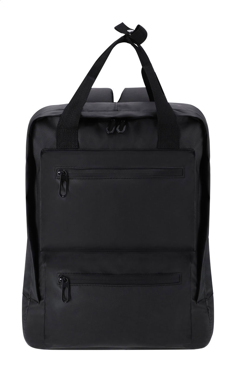Zaino in morbida pelle PU con scomparto chiuso da cerniera, tasche anteriori, scomparto imbottito per laptop (15“) e tablet (10”), schienale e spallacci imbottiti.